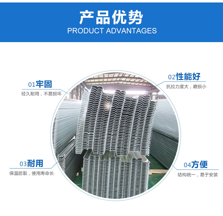 1025鍍鋅樓承板即建筑壓型鋼承樓板采用鍍鋅鋼板經(jīng)輥壓冷彎成型,其截面成V型、U型、梯形或類似這幾種形狀的波形,主要用作樓承板,也可被選為其他用途。